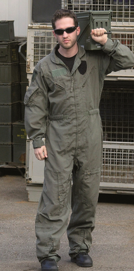 • US FLIGHT COVERALL - FLAME-RETARDANT - OD - MILITARY SURPLUS - USED