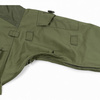 - Four patch hip pockets with flap and buttons, also with plastic D-ring and water hole inside;