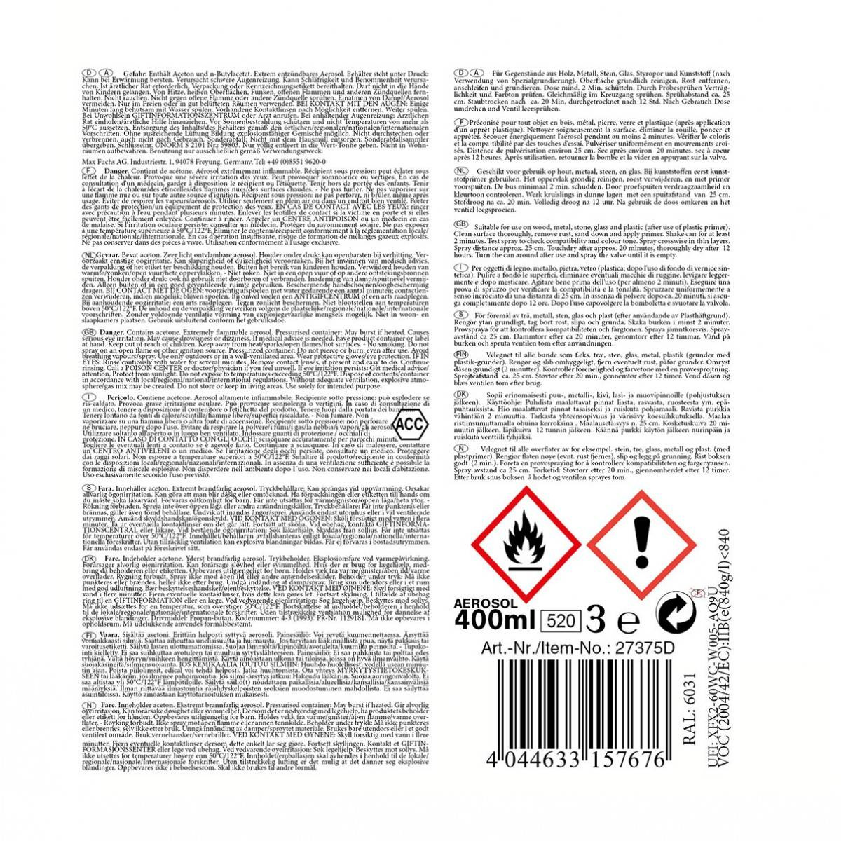 - contains: Acetone, n-butyl-acetate Hydrocarbons, C9-C10, n-Akanes, Isoalkanes, Cycloalkanes, <2% Aromatics- pressurized container, highly flammable!