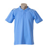 Piquet short sleeve knit shirt, light blue, 100% cotton composition.