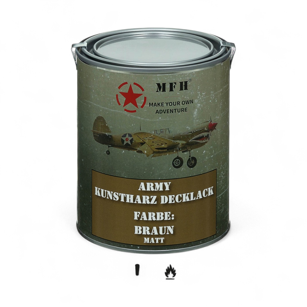 Professional synthetic resin-based finishing paint, quick drying and excellent adhesion on various types of surfaces. Ideal for military or utility camouflage applications, both indoors and outdoors.