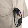 This shirt is designed for law officers, operators, security personnel, and active persons who need garments combining functionality, tactical look, and esthetics. It is cut loose enough to allow movement, hide a low-profile body armor or IWB holster. The fabric is breathable and dries quickly. Front stiffener under the collar prevents collar rolling – it would stay neat even under duress. The button slat has an eyeshade holder.