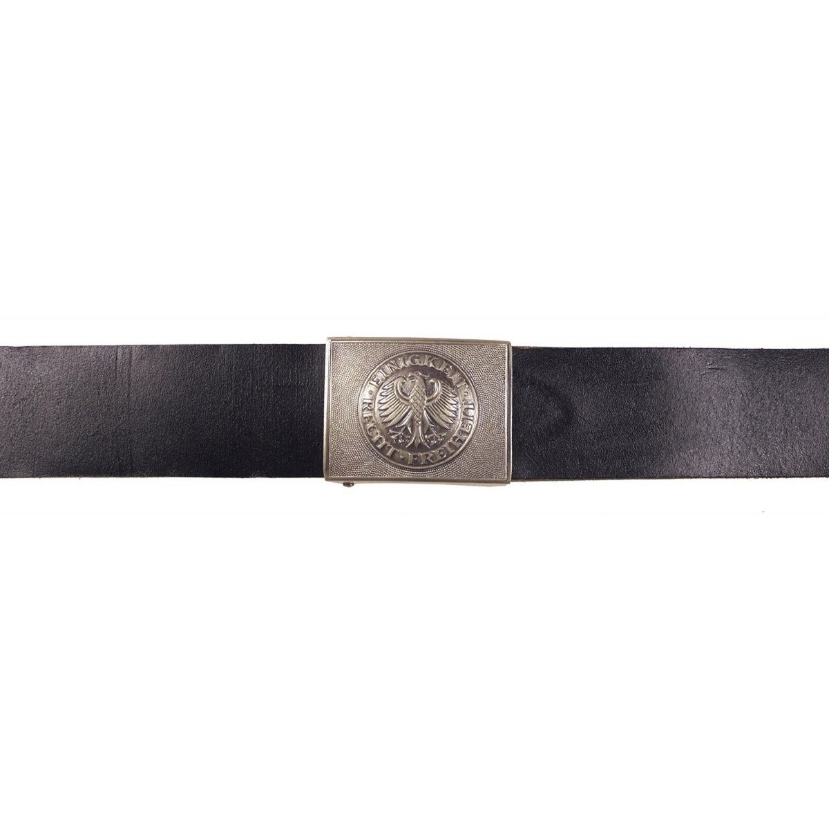 • Leather belt with silver buckle - German Army surplus - Black - Used