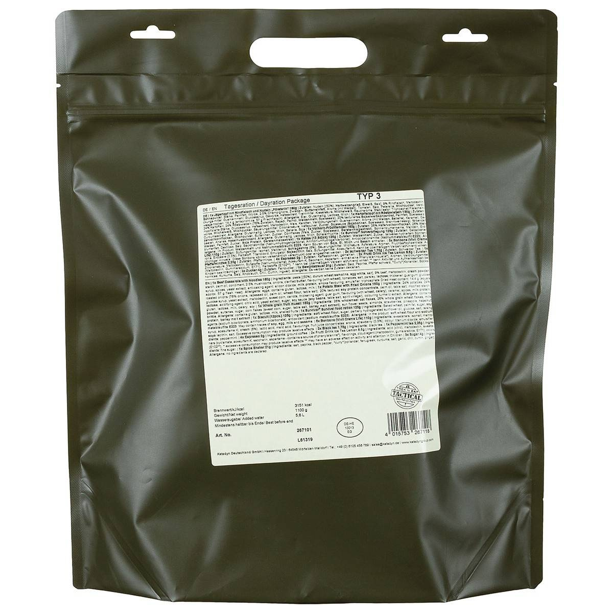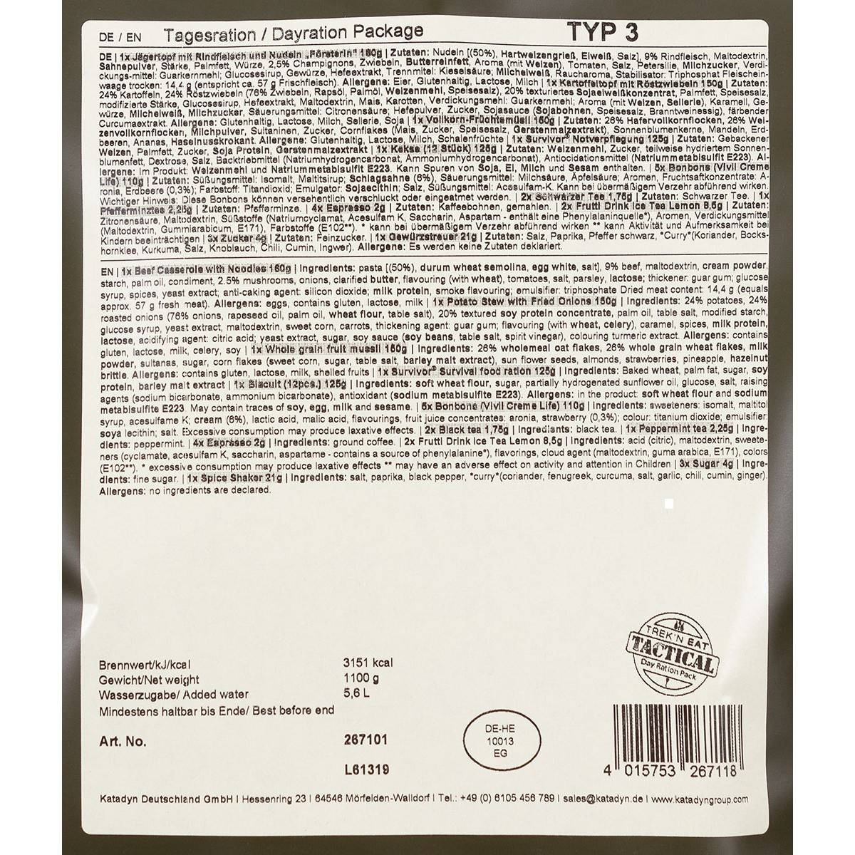 Meal pack for one person for 1 day