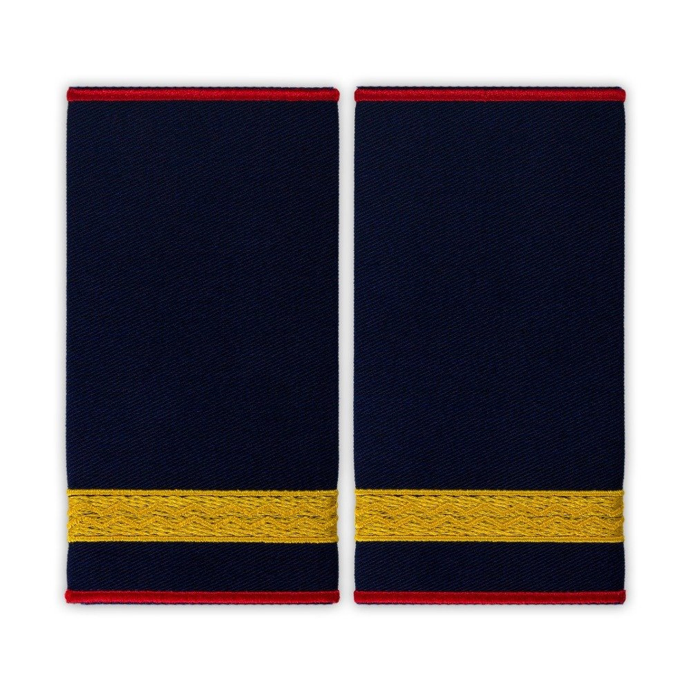 Va oferim grade pentru sef grupa SVSU – SPSU cu marginile brodate cu fir rosu. Broderia este realizata direct de producator din fir Madeira Polyneon 100% polyester de culoare galbena. Suport confectionat din tesatura 65/ 35% bumbac polyester are intaritura termcolanta si este in nunanta navy asigurand un contrast foarte bun intre el s broderie.