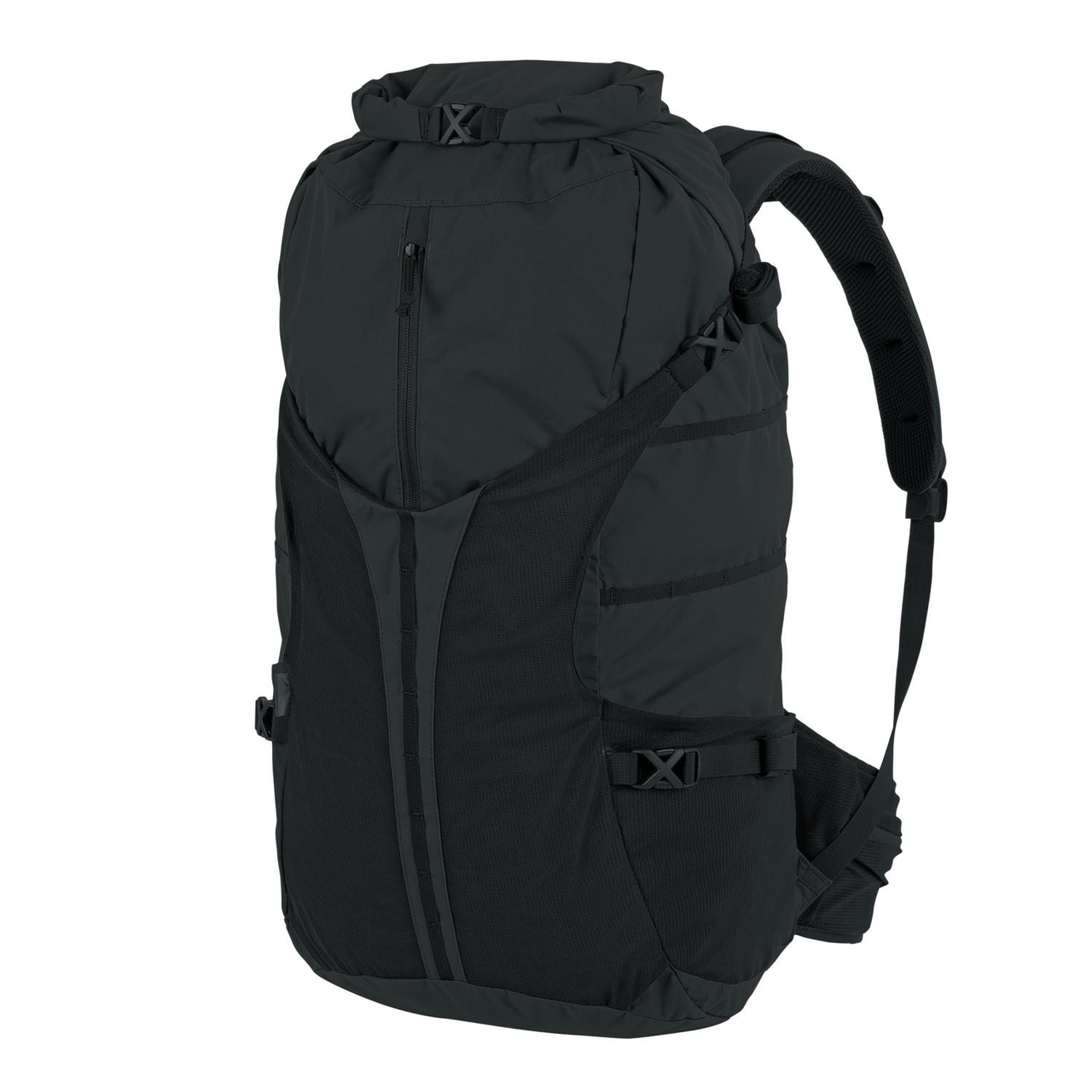 SUMMIT is the answer for all modern hiking needs. The pack is a combination of lightweight, durable fabrics with comfortable, packable construction. The pack itself has been stripped of all unnecessary additions that would have negative influence on the weight. Spacious main compartment has two access points - one via the rolltop collar and second via front, vertical zipper. The pack has two elastic mesh pockets on sides for water bottle of small jacket, while elastic mesh beaver tail, placed on the front, can be used to carry helmet or even a larger winter jacket. Comfortable, profiled hip belt has two zippered, mesh pockets. Additionally, thanks to 10mm wide MOLLE Lite webbing on sides you are able to attach some larger MOLLE/PALS compatible pouches.