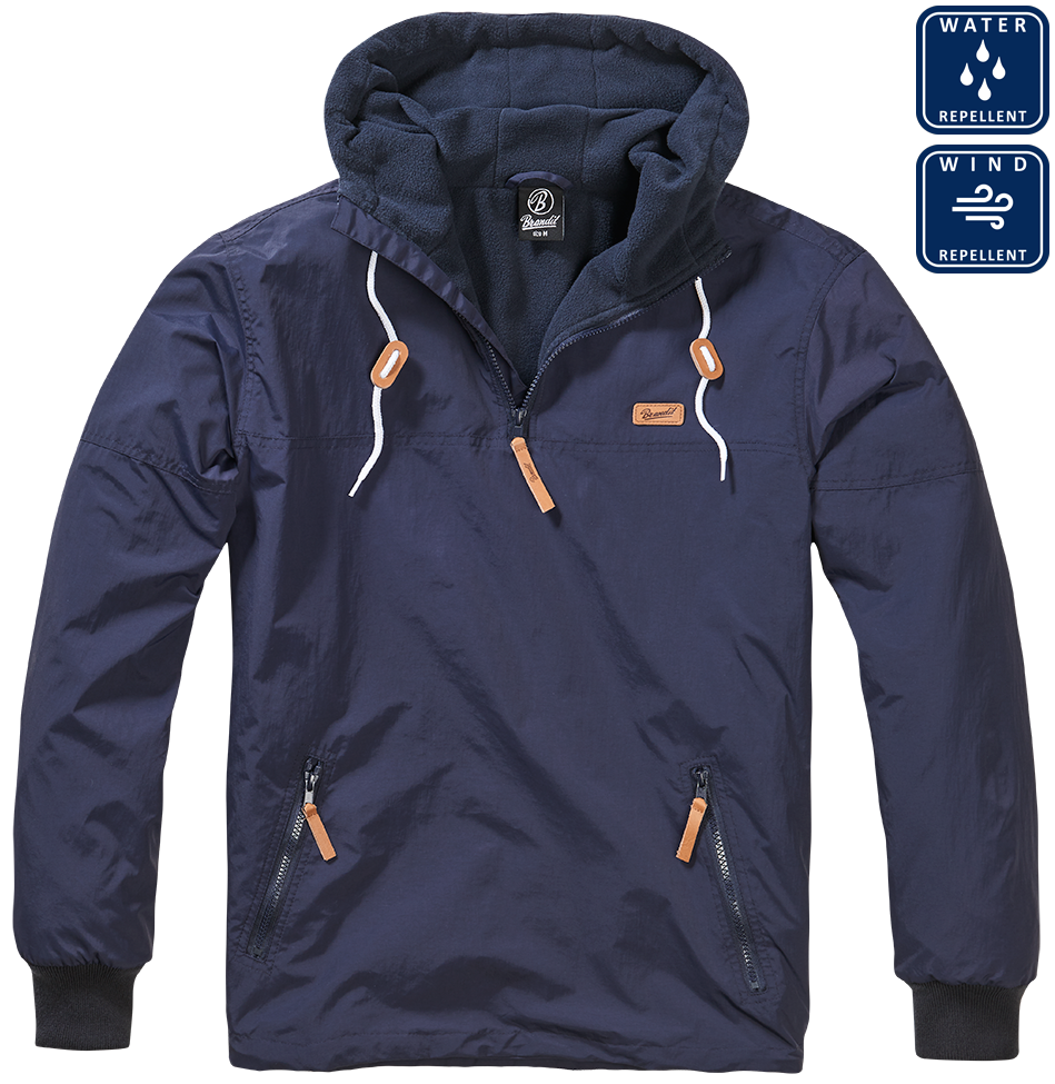 100% nylon, lining: 100% polyester, wristband: 80% polyacrylic, 20% polyester - contains non-textile parts of animal origin