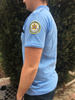 Piquet short sleeve knit shirt, light blue, 100% cotton composition.
