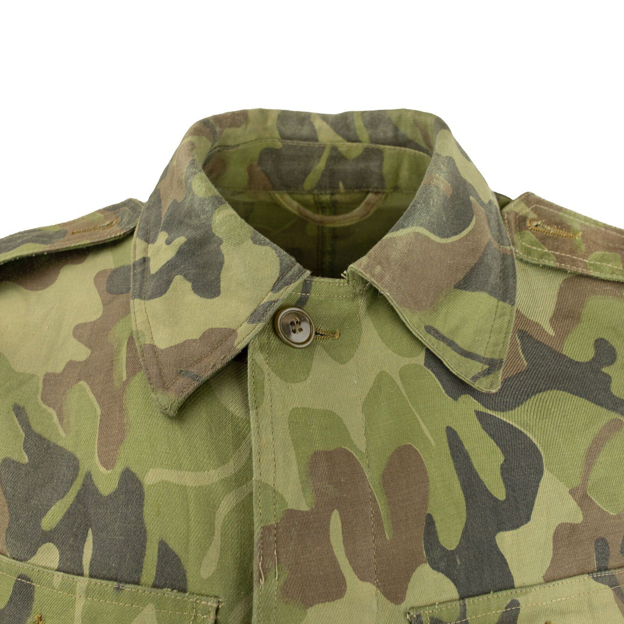 Original Romanian M93 battle dress uniform jacket with a genuine camouflage pattern called "leaf" this pattern was issued to all military personnel in the 90s.