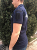 Piquet short sleeve knit shirt, navy blue, 100% cotton composition.