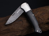 The series version of the Boker Classic Hunter pocket knife is already a very sophisticated-looking knife. The special run not only offers scales from select grenadilla wood, but also a blade made of hand-forged, stainless Damascus steel by Chad Nichols/USA in ladder pattern whose high-contrast grain looks especially exclusive in combination with the darkly gleaming grenadilla. Whether as collector's item or for everyday use, the Boker Davis Damascus steel special run is a gem for every knife lover. Brushed stainless steel bolsters. Back lock mechanism. Limited to 199 units world-wide. Delivered in a special partially-transparent package which can be used to display the knife in a cabinet.