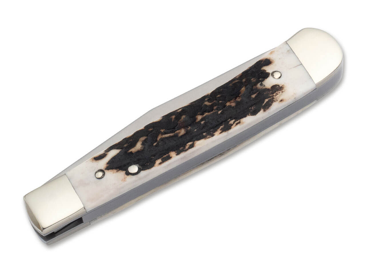 The classic Boker Trapperliner combines the design of the trapper already used by the American Rangers supplied with the modern linerlock. The scales of handpicked stag horn and the classy nickel silver bolsters house the polished blade of stainless, ice-hardened 4034, which is opened with both hands by nail nick. A slim, elegant pocket knife for every occasion. Supplied with a high-quality felt case for storage. Handmade in the Boker Knife Manufactory in Solingen.