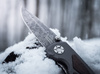 The Leopard Damascus is forged out of the German battle tank Leopard I. This specialty steel is not available to the market because it was only used for the military. Our Damascus forger was fortunate to acquire some for Boker exclusively. A chromium-manganese and vanadium tool steel alloy was added to this extremely wear-resistant barrel steel. The result is a remarkably high hardness for Damascus steel (61-63 HRC). The pattern provided on the blade is labeled "Small Pyramid". Handle material is 6061-T6 aluminum and features Ziricote wood inlays. Knife includes certificate of authenticity and gift box. Serialized.