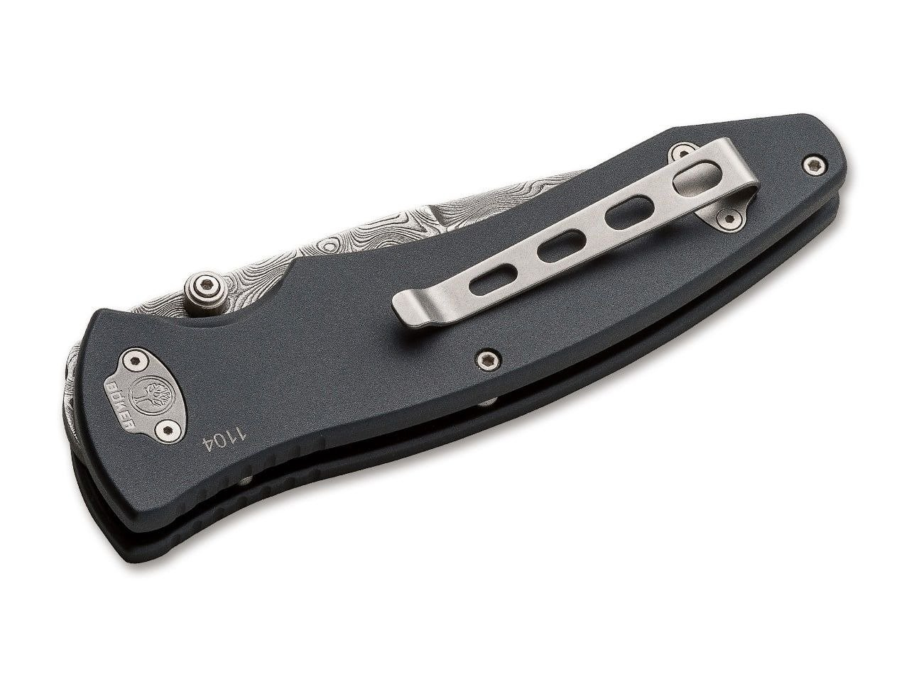 The handle, made of high strength AlMgSi1 aluminum (with Silicium, making it a much higher quality than standard AlMg3), is hardcoat anodized and provides a firm and secure grip. The reversible clip allows for tip-up or tip-down carry. For the handle inlay we chose domestic walnut, which has a long history as shaft wood for German rifles due to its superior characteristics. This eye-catching inlay also features the original Tirpitz crest. This knife combines history, tradition and modern technology in a more than unique way. Comes complete in a presentation box with a certificate of authenticity and is serial numbered.