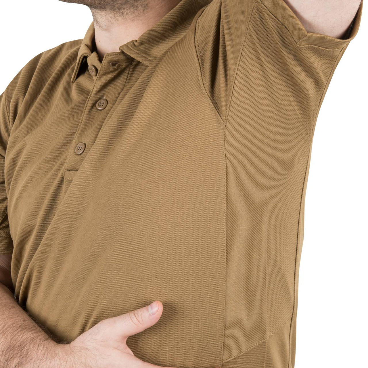 Our classic UTL® Polo Shirt made of lighter version of our TopCool fabric – TopCool Lite. Thanks to this the shirt stays dry for longer time, but also the shirt is much more breathable. To make it even more functional, the button slat has an eyeshade holder loop, and left sleeve has a small buttoned pocket.