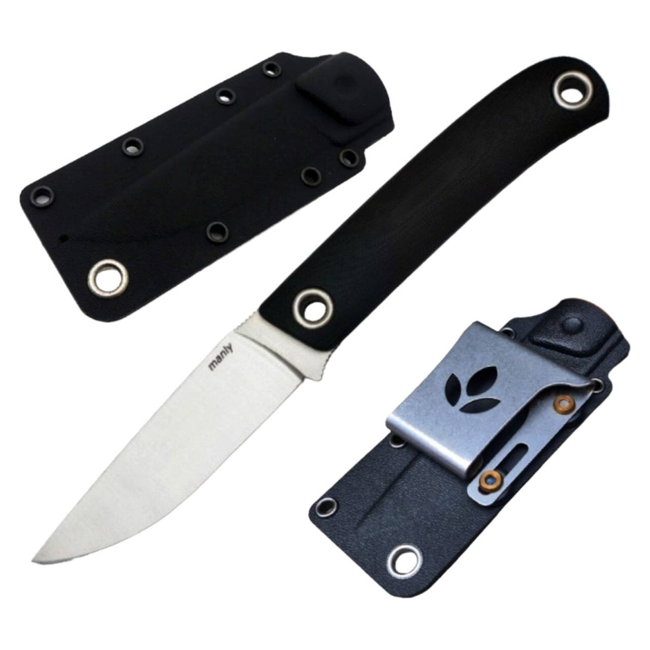 With the Patriot, Manly presents the fixed-blade version of the popular Comrade folder. Almost identical in size, the Patriot is the perfect choice as a compact, well-balanced companion for everyday use or as an easy-to-handle hunting and outdoor knife. With a satin blade. With a black G-10 handle and D2 steel blade. Comes with a Kydex sheath and belt adapter.