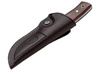 Muela's Kodiak has been one of the Spanish manufacturer's most popular knives for years and has become a constant companion for many hunters. The knife is made from a single piece of steel and is therefore also ideal for rugged work, the continuous blade giving the knife exceptional stability. The Muela uses cocobolo wood, nickel-plated brass hinges, and a snug hole to complement the noble features of the handle. The matching leather sheath is secured with a staple.