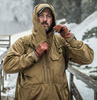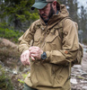 We’ve designed the Pilgrim® jacket for demanding outdoor activities in dynamically changing weather. Based on the zipped "kangaroo" construction proven for decades, it has been clearly refined to meet the expectations of modern travelers, while still hitting the aesthetics of the "old guard". Numerous pockets will allow for convenient placement of equipment, while their characteristic arrangement will make them constantly available, even when working in a sitting position or kneeling. We have elongated the whole construction of the jacket, thanks to which it protects our body regardless of the equipment we carry. By lowering the "kangaroo" pocket, we were also able to extend the front zipper of the jacket, which allows the user to better ventilate his body during strenuous approaches or work