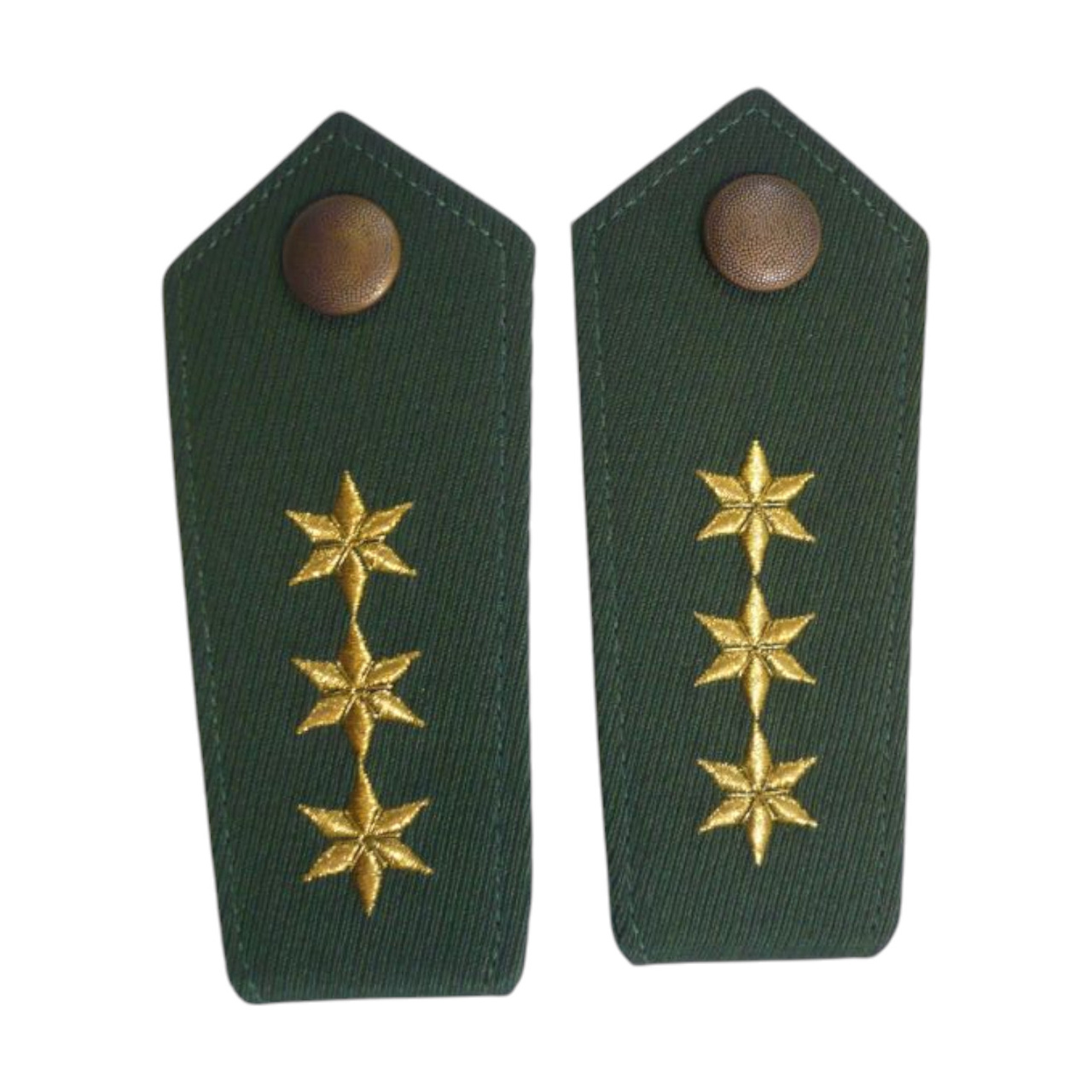 PAIR OF POLICE EPAULETTES – 3 STARS – OD GREEN/GOLDEN – WEST GERMAN FEDERAL POLICE – LIKE NEW