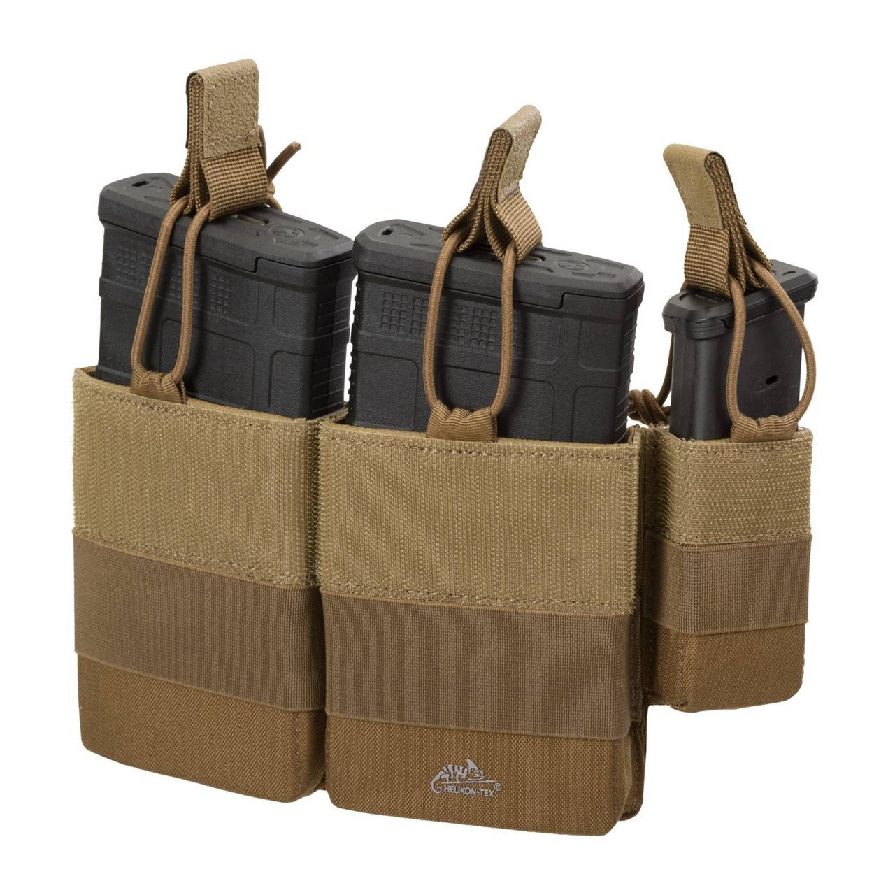COMPETITION TwoGun Insert is an accessory pouch panel that goes to the dedicated pocket in the COMPETITION MultiGun Rig. This insert was designed for the shooters that prefer a bit larger caliber, especially for the .308 fans. The insert will fit two rifle magazines, including the large, bulky G3, FAL or SR25 magazines. Additionally, the insert has a section for one pistol magazine. The pouches for magazines are partially stiffened to help you during reindexing or reholstering the magazines. Elastic webbing that goes near the center of the pouches will prevent the magazines from falling out, even during rapid movements.