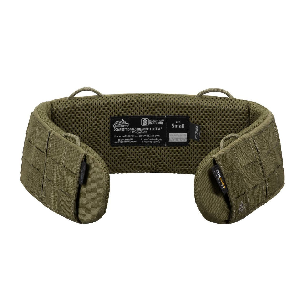 COMPETITION Modular Belt Sleeve® is one of the two platforms of the COMPETITION Set. It was designed as an additional sleeve for the main 45 mm wide COMPETITION Nautic Shooting Belt, but will also work with any other gun belts up to 45 mm wide. The sleeve is fully padded with thick, durable EVA® foam, so that you wont feel any discomfort from gun belt of sharp edges of the pouches. On the surface there are laser cut modular platforms compatible with MOLLE/PALS system. The platforms are divided into section so that you are able to weave your belt outside for mounting holster or belt mountable pouches. On the sides there are two horizontal slits on the bottom for mounting hip holsters or drop leg panels. The sleeve is profiled and lined with mesh for comfort even during prolonged use. Four low profile paracord loops will allow mounting of any harness.
