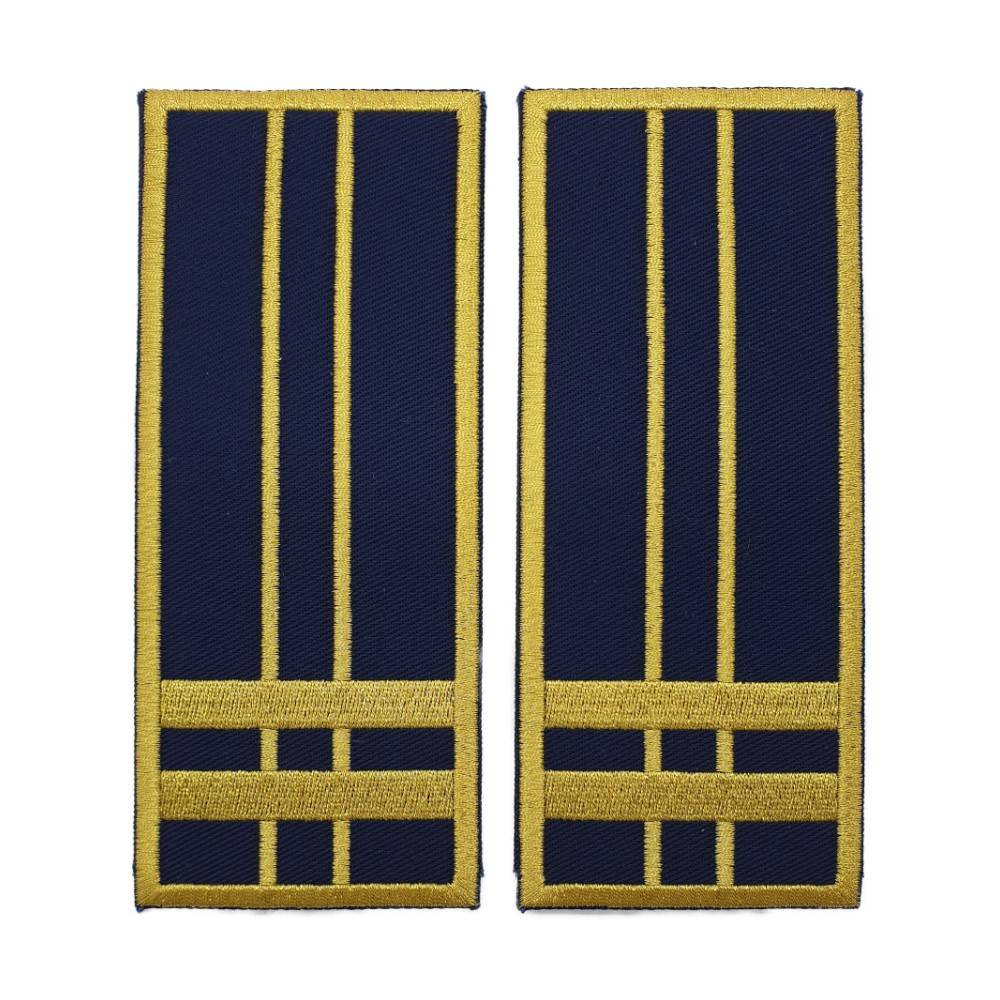 Grade Inspector Vamal Principal brodate pentru uniforma Serviciului Vamal. Gradele brodate de noi sunt de calitate superioară și sunt potrivite pentru fiecare tip de uniformă a personalului vamal.