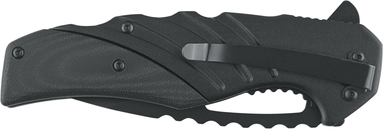 - 8Cr black oxide coated blade with thumb cut-out