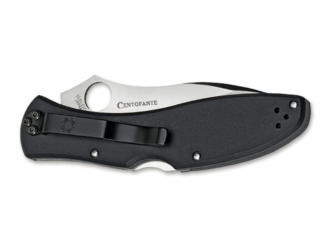 The Spyderco Centofante 3 is equipped with a lightweight FRN handle and a VG-10 blade. The pocket knife was designed by Frank Centofante, one of Spyderco's first designers and president of the American Knifemaking Guild for many years. The hollow-ground blade is locked with a backlock and has a fine jimping in the area of the thumb rest. With convertible clip (tip-up/tip-down).