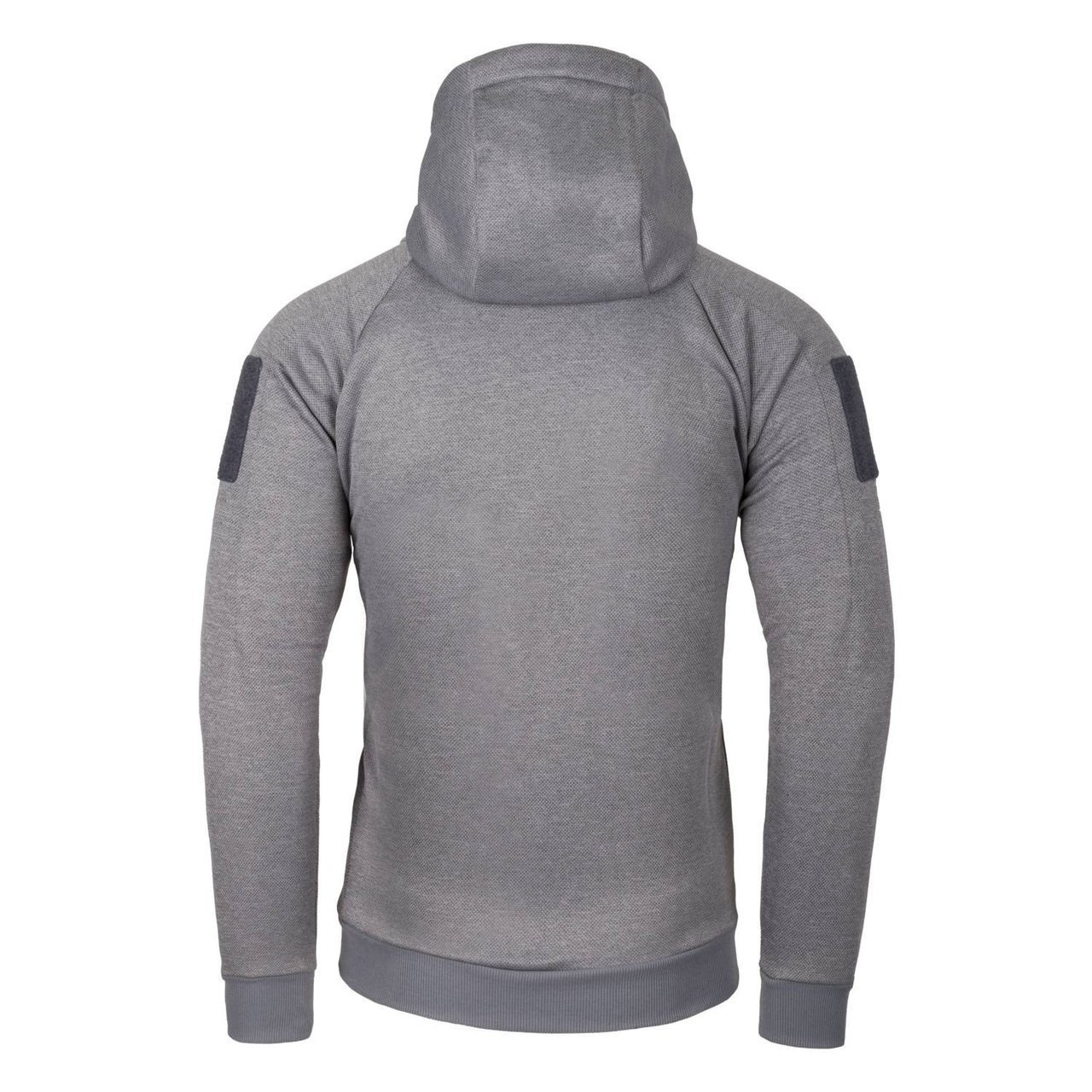 URBAN TACTICAL HOODIE® is a lightweight, full zip hoodie jacket. Simple, low profile cut and elastic fabric make this jacket perfect for any urban operations. Two classic front pockets will accommodate all your essentials to which you need quick and easy access, but can also work as a hand warmer pockets in cold days. Additionally inside those pockets there are smaller, hidden pockets closed with a zipper. Two inner mesh pockets will fit your wallet or documents, preventing them from being stolen or lost. Zippered pockets on shoulders are closed with concealed zippers, almost invisible from a distance. On biceps there are large loop panels for personalization. Additional loop panel is on the back of adjustable hood.