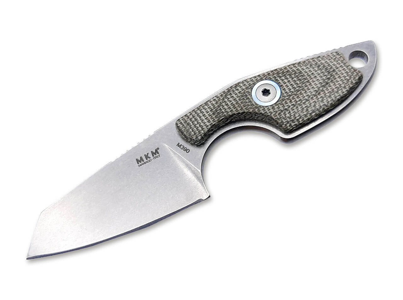 MKM Mikro 2 CF is small but beautiful. The Neck Knife designed by Jesper Voxnaes has a sheepfoot blade made of high-strength Böhler M390. The non-slip handle made of carbon fiber lies securely in the hand even during difficult cutting work. With high quality leather sheath and lanyard.