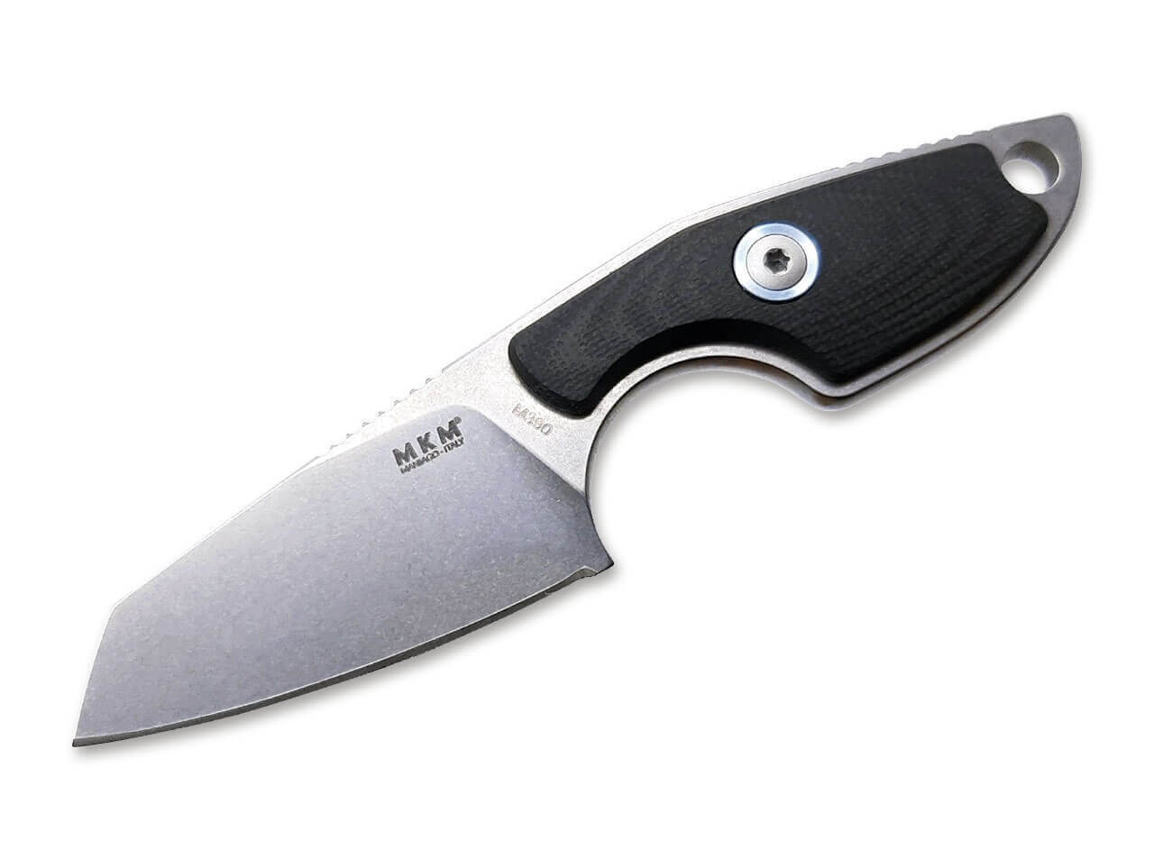 MKM Mikro 2 CF is small but beautiful. The Neck Knife designed by Jesper Voxnaes has a sheepfoot blade made of high-strength Böhler M390. The non-slip handle made of carbon fiber lies securely in the hand even during difficult cutting work. With high quality leather sheath and lanyard.