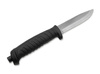The Magnum Knivgar is an uncompromising and modern implementation of the knives of the Scandinavian Sami, which have been tried and tested for thousands of years in the harsh Nordic wilderness. It is a universal workhorse for hard and ruthless use in survival training, hunting, fishing, crafts or any other conceivable application. The blade is made of 420A stainless steel and is breakproof and easy to sharpen even under field conditions with simple means. The indestructible black plastic handle is inseparably connected to the blade by injection moulding, as is the practical hammer and chisel surface on the pommel. These extend the range of applications of the knife by numerous practical tasks. The one-piece sheath made of weatherproof plastic is equipped with a belt loop and a drainage. This allows all parts of the knife to be cleaned easily and thoroughly, especially after hunting.