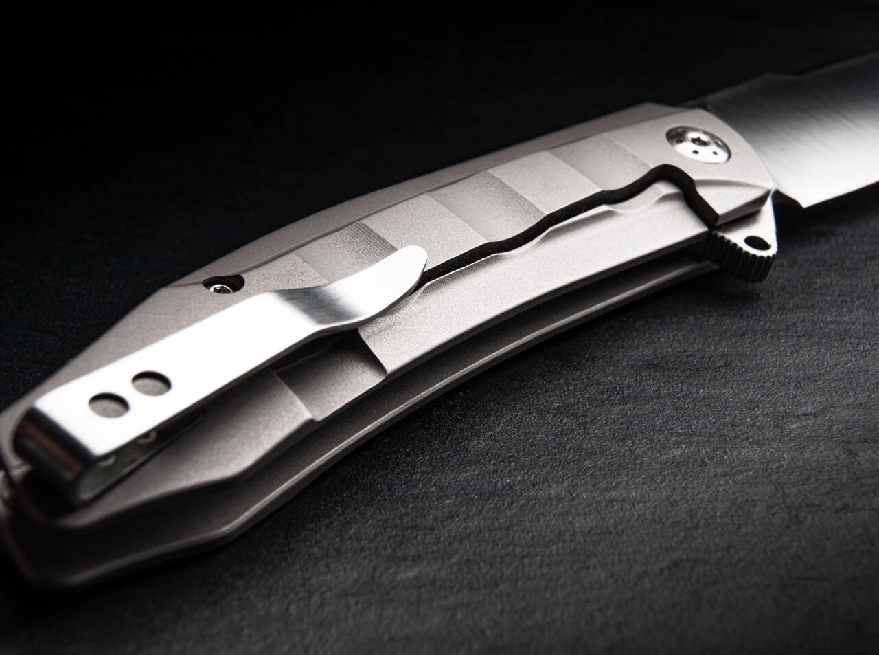 Smooth blade movements and a low weight make the Boker Plus Talpid a perfect everyday companion. The tapered spearpoint blade is made from D2 and has an elegant ricasso that lends the pocketknife a dynamic look. The satinized blade on ball bearings is opened with a flipper that also protects the hand. The stainless steel handle scales are CNC-milled in 3D, which gives the knife a perfect grip and an extraordinary appearance. The pronounced jimpings of the thumb rest and the sturdy framelock make the knife safe to use. With a deep-carry clip (tip-up).
