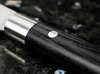 The Boker Damascus Black Kitchen Knife line combines traditionally Japanese handles made of black local Plywood with razor-sharp blades made of stainless Damascus with 37 layers of steel, characterized by a beautiful grain. The extremely high-impact core of the Damascus blade consists of the high-performance VG-10 steel. The noticeable sharpness when cutting is breathtaking and makes cooking an experience. The Japanese design of the knife handle with the matted stainless steel clamps gives the line its special character. Top chefs are not the only ones who swear by Japanese kitchen knives – they are also popular with many ambitious amateur chefs. The advantages of the knives with Japanese handles and traditional construction of the blade with push tang and stainless steel ferrule are patently obvious, because they can cut delicate foods without squashing or bruising. When cutting herbs, for example, the fine cut hardly releases their oils. So, the aromatics are not lost and you can even avoid tears when cutting onions. The sense of sharpness during cutting is breathtaking and makes cooking a true experience. The secret of this unusual sharpness lies in the material and its processing. The blade consists of 37 layers of Damascus steel. The stainless premium blade steel VG-10 used for the center layer is made in Japan and offers hardness, resilience and a homogeneous crystalline structure. In direct cooking performance comparison with a product made by an established Solingen kitchen knife manufacturer in accordance with DIN EN ISO 8442-5, the kitchen knife line Boker Damascus Black is literally a cut above. The representative DIN test showed that the cutting performance of our knives was 68% better than that of the competitor's product. The knives also score points with their higher level of initial sharpness. Thus, constant sharpening is a thing of the past.