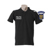 • Piquet short sleeve knit shirt, black, 100% cotton composition.