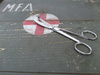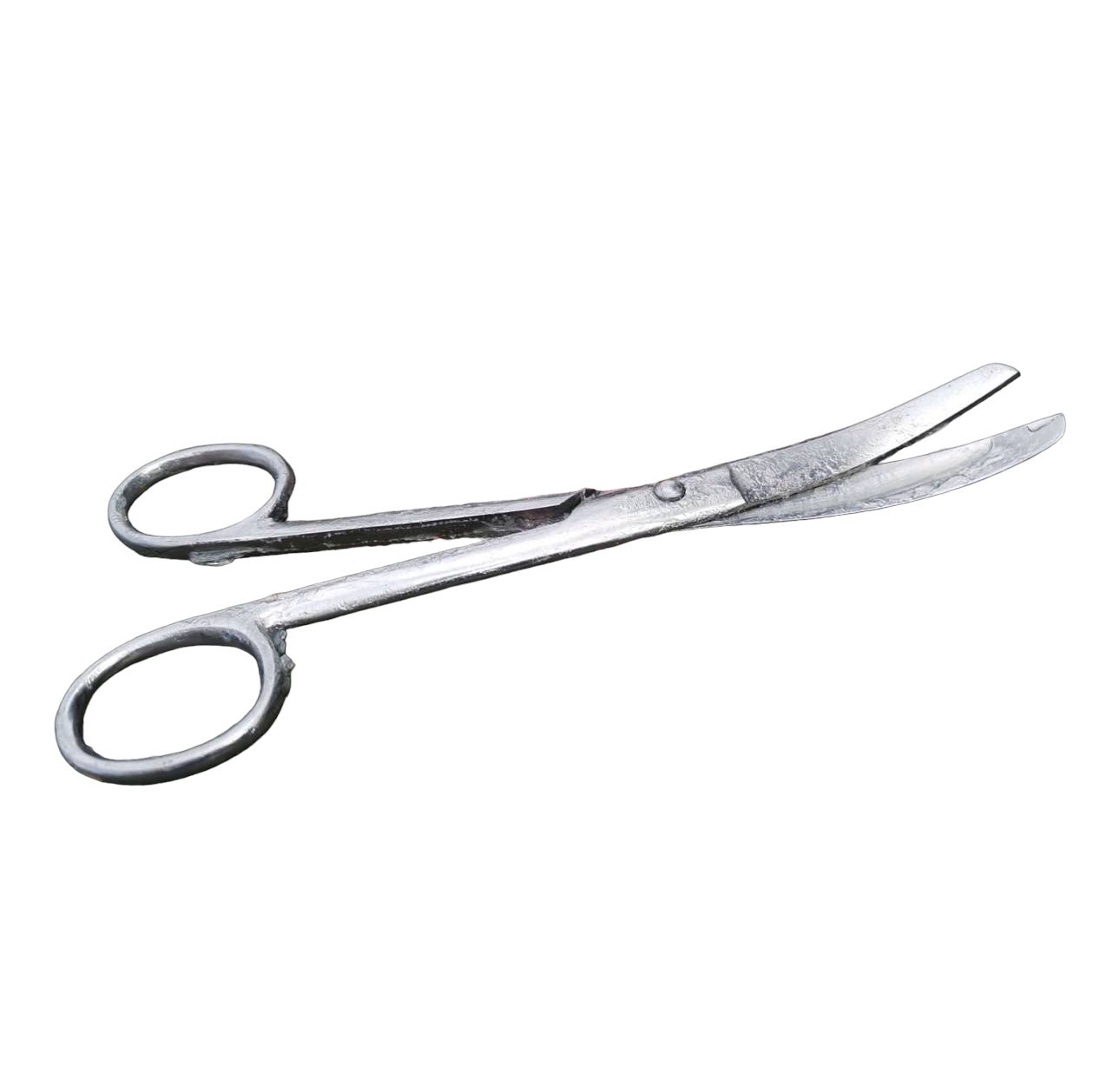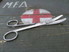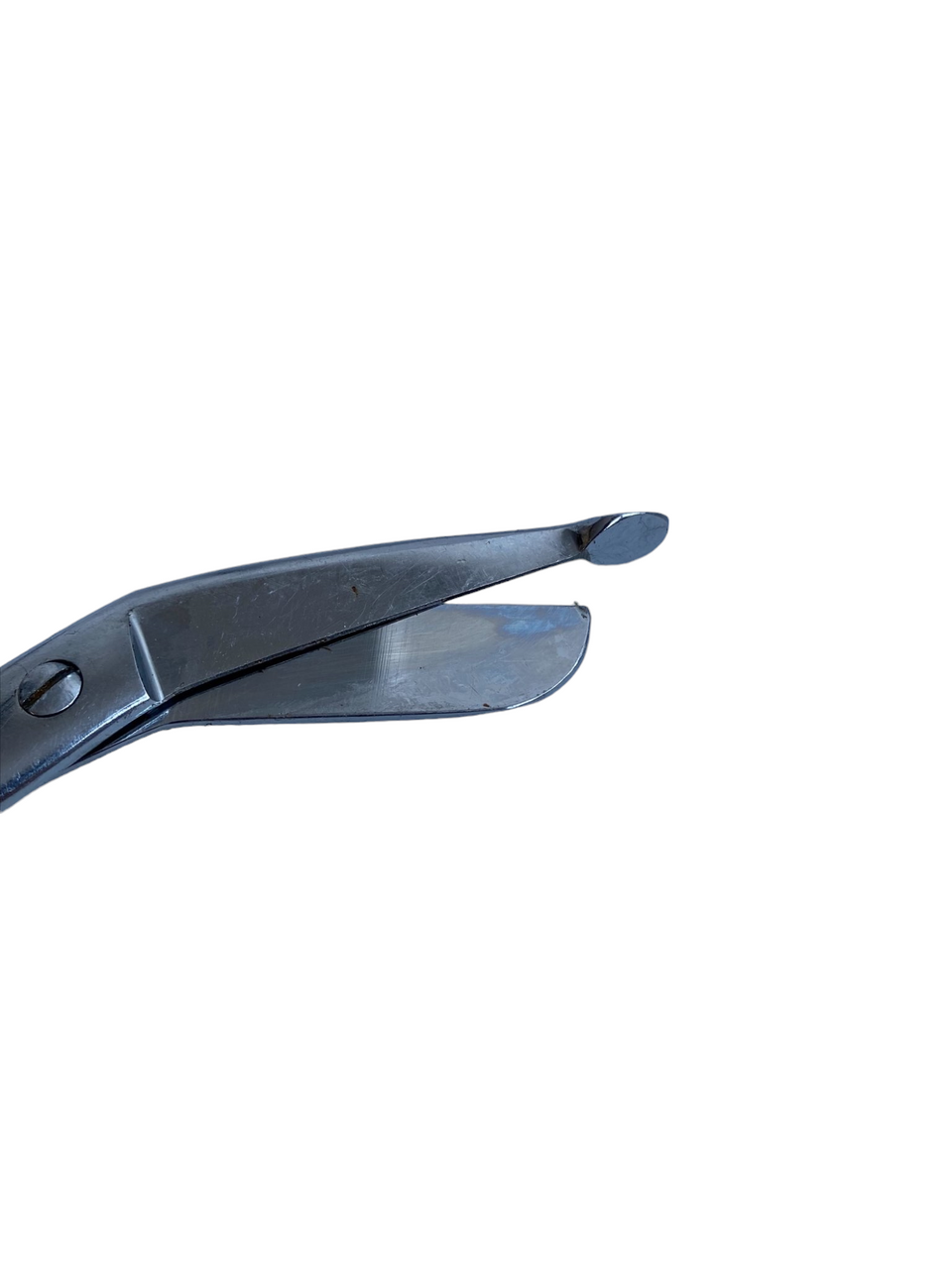 Difficult to see but if the scissor lays flat, the end of it is going up. The angle is not horizontal like medical scissors for clothing, but vertical.
