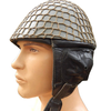 Romanian paratrooper helmet, made based on the M73 infantry model, with liner, padding, a net on top, and protections for neck and ear.