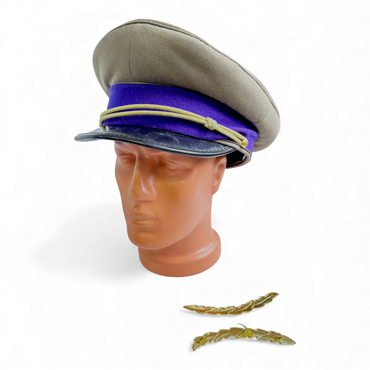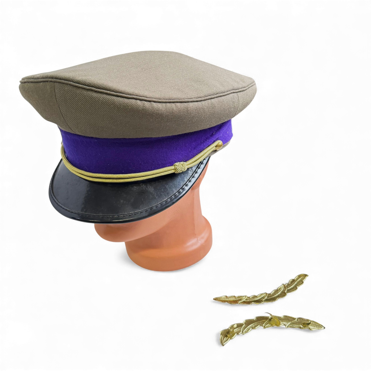 • Non-Commissioned Officers Cap - Quartermaster - Ceremonial Model with Cord and Gold Embroidery - Romanian Army Military Surplus - Purple/OD Green - Good Condition