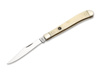 The extremely slim Boker Delicate is based on a classic flying game hunting knife and is now mostly used as a picnic knife, compact steak knife or slim and handy companion for the smaller cutting tasks in everyday life. The polished blade is made of stainless, ice-hardened 440C, opened by nail nick and does not lock. The white bone handle scales and nickel silver bolsters emphasise the traditional character of this handy knife. Supplied with a high-quality felt case for storage. Handmade in the Boker Knife Manufactory in Solingen.