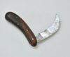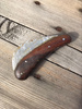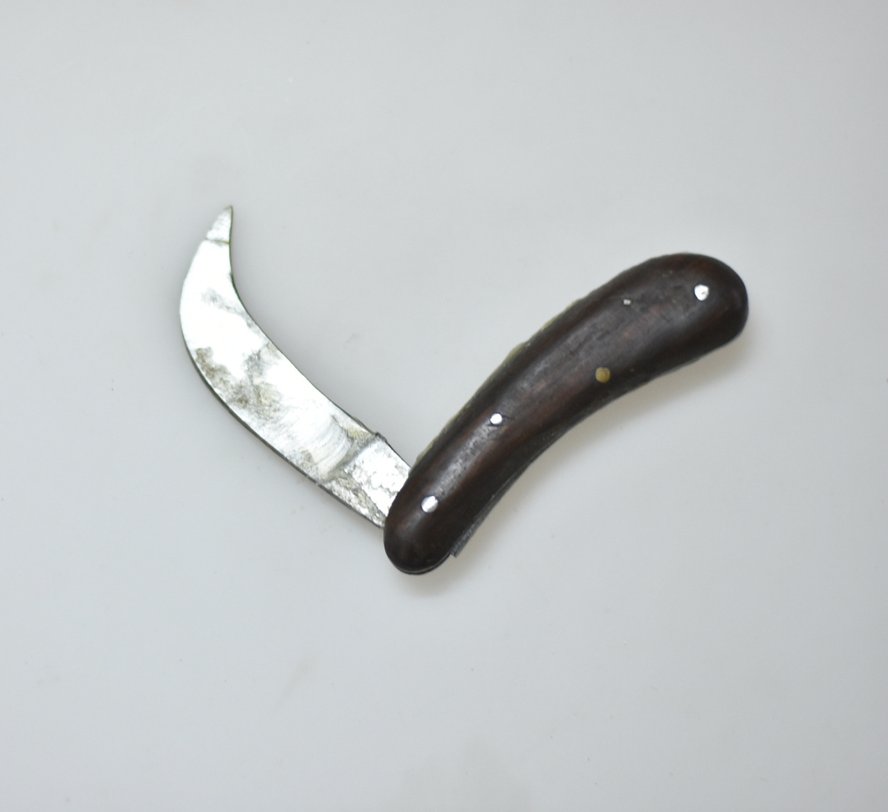 This folding pruning knife is an original military surplus from the stocks of the Romanian Army. Very elegant and at the same time practical and resistant, the knife has a beautiful wooden handle and a very sharp steel blade. The curved shape of the blade allows for a clean and efficient cut - just grab the thin stem or branch and pull the blade towards you.