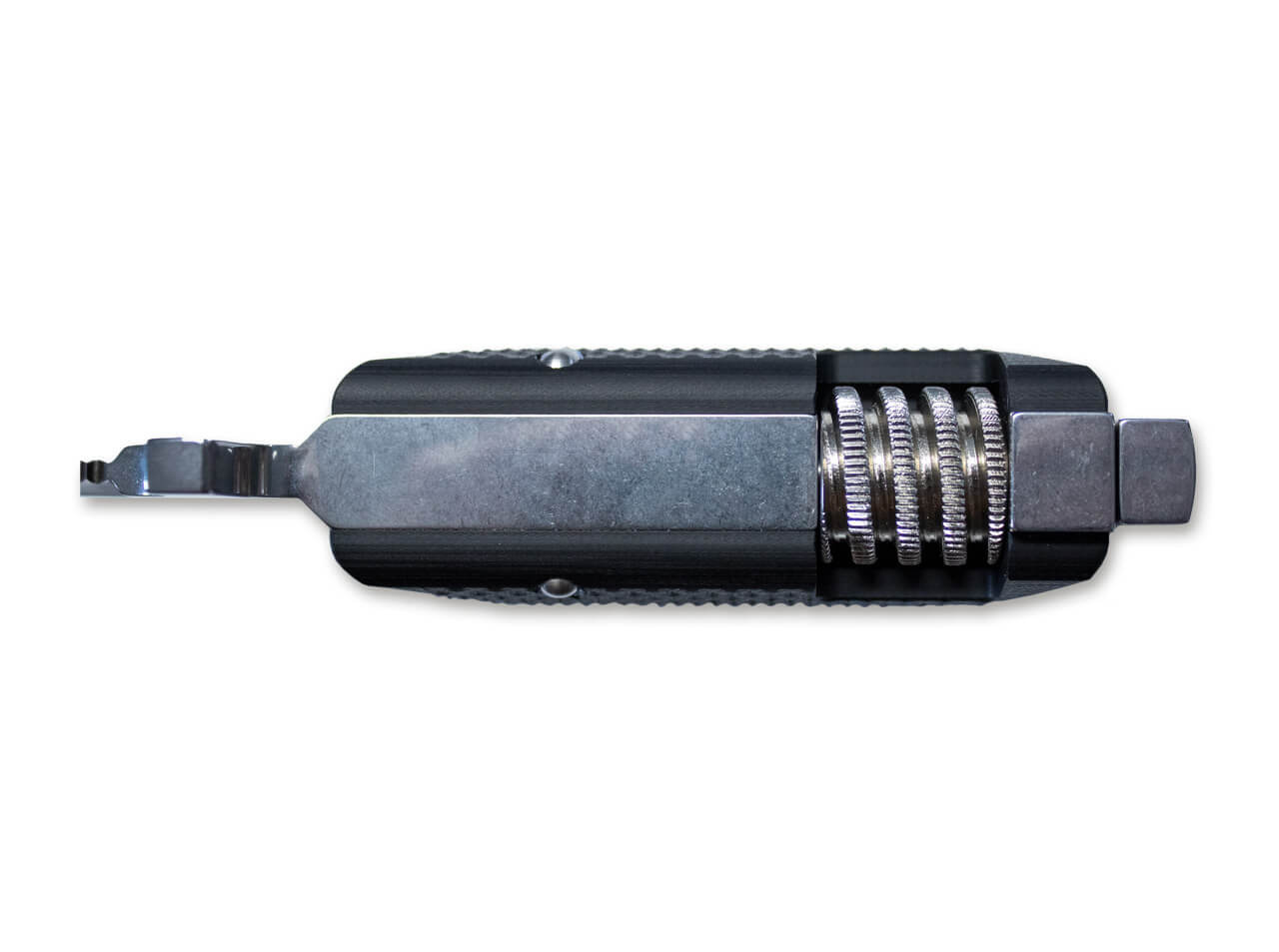 The handle end is also equipped with a solid rolling fork key. With the help of the tool, also known as the Englishman, even large hex bolts can be easily loosened. The practical sheath is made of richly greased thick cowhide. Regularly maintained, the leather withstands salt water and UV radiation longer than modern plastics. The Galeazzi diving knife is best worn in style with a Blancpain Fifty Fathoms or an Officine Panerai.