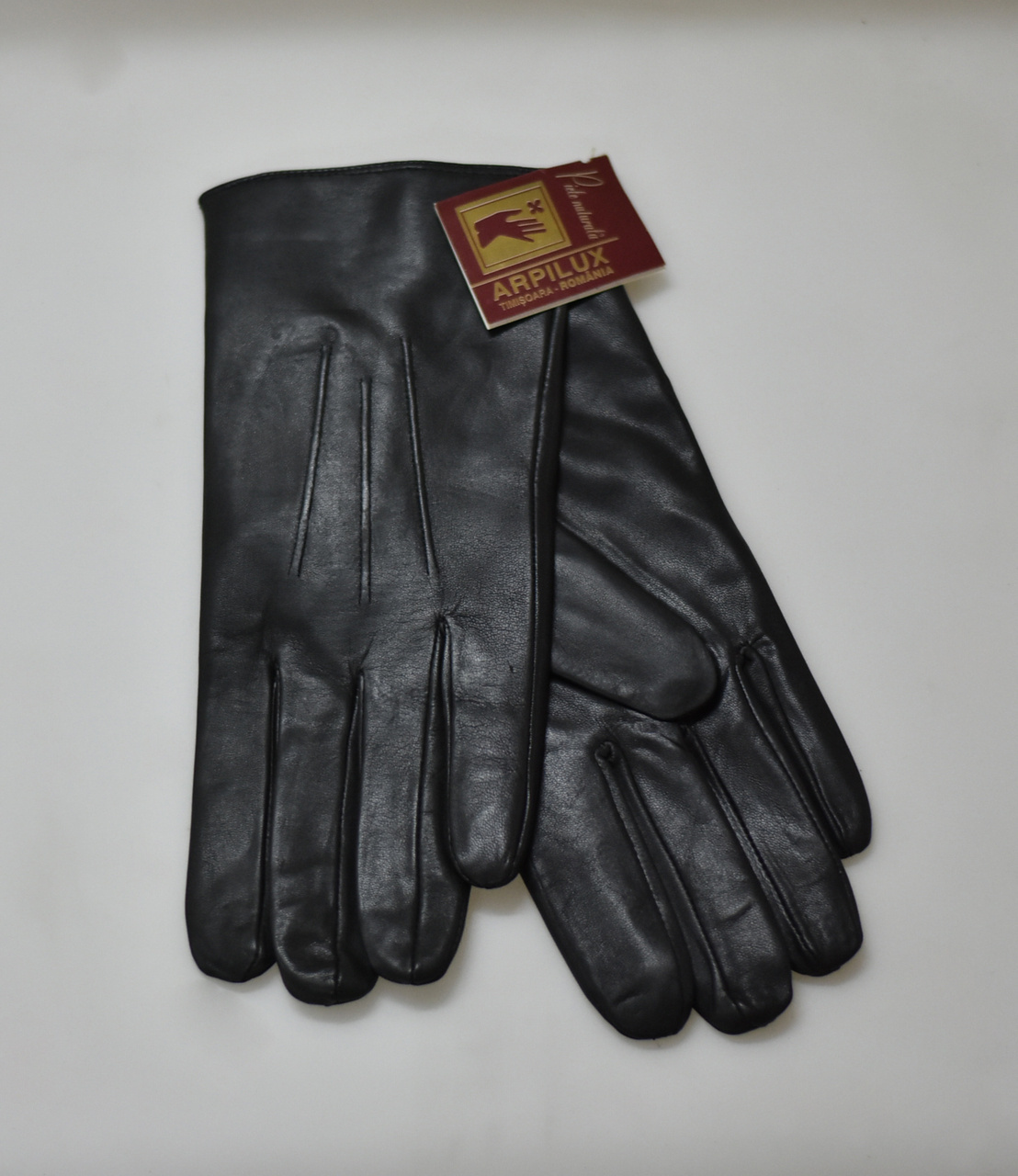 Natural leather gloves, very good quality, black colour, new, unused. Military surplus from Romanian army stock.