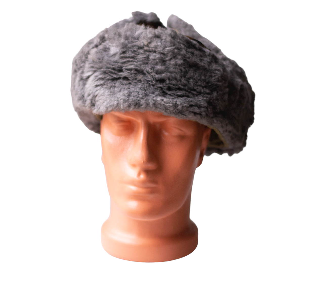 Fur hat with rim, grey/camo color. Romanian Military Surplus.