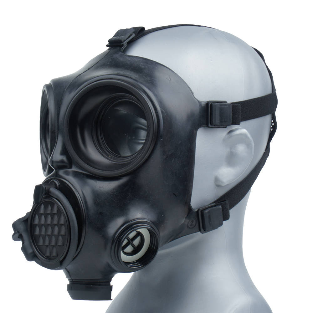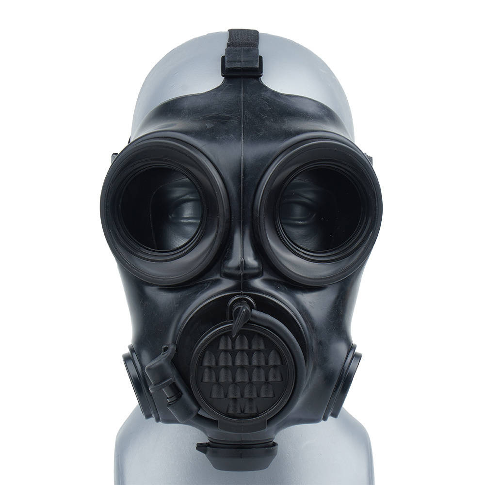 The face part of the mask is made of bromobutyl rubber (a combination of butyl rubber with bromine), i.e. vulcanized polyisobutylene. It has maximum impermeability to TIC (Toxic Industrial Chemicals) and CWA (Chemical Warfare Agents). Visibility is provided by a pair of round quartz glass visors. They are resistant to scratches, chemical stains, and abrasions.