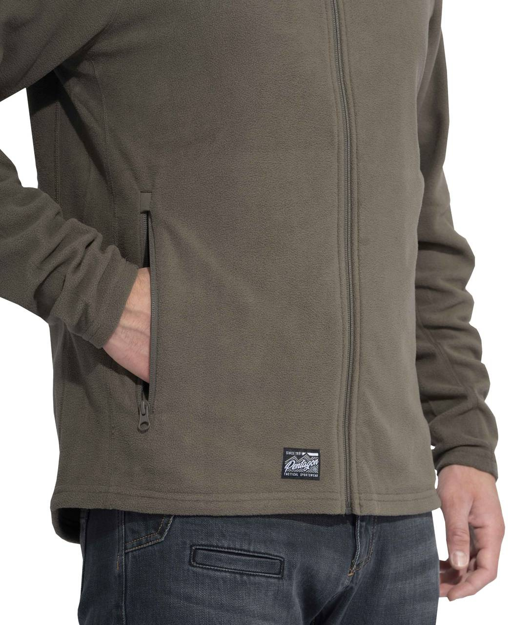 • The Arkos fleece sweater has an inner storm flap that prevents wind from blowing through the zipper area.