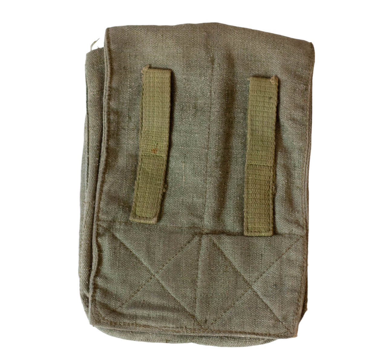 The AK-47 magazine pouches are completely original Romanian military surplus. These holsters are approximately 10″/7″/3″ in size and are constructed of a rigid, cloth material that has held up very well over the years. They are designed as two-chambered holsters so that each magazine slides easily into its own chamber inside the holster. An oversized flap closure is used to protect the sheds and is secured by a slotted strap and fastener. There is also a specially designed exterior compartment to hold an oil bottle for the AK-47. This pouch can also be used for other small accessories.