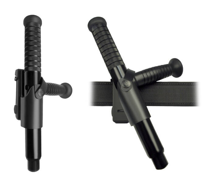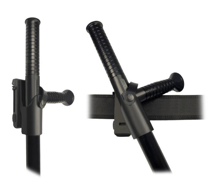 • This type of holder uses the UBC-02 flat quick coupler clamp design, which allows for quick insertion on a belt with one hand. Compared to the UBC-01 clamp, the distance between the strap and tonfa is smaller with this type of clamp. The tonfa can be rotated in a full 360-degree circle and has 16 locking positions. It can also be attached to the M.O.L.L.E. support system.