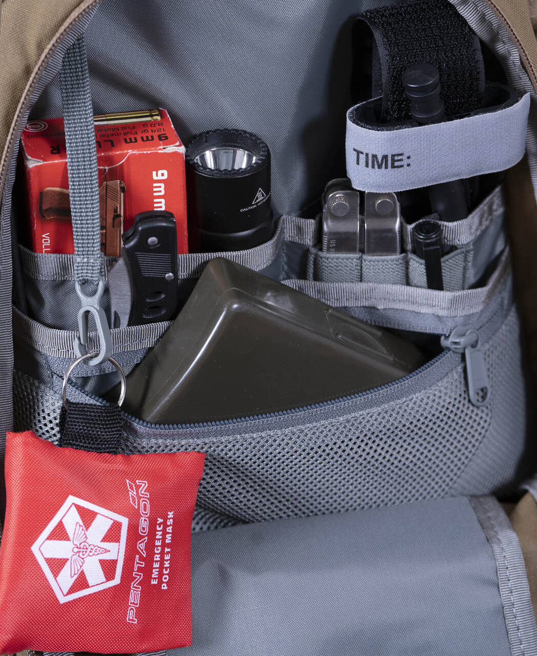 • Hanging system compatible with Hydration Bladders up to 3lt in main compartment