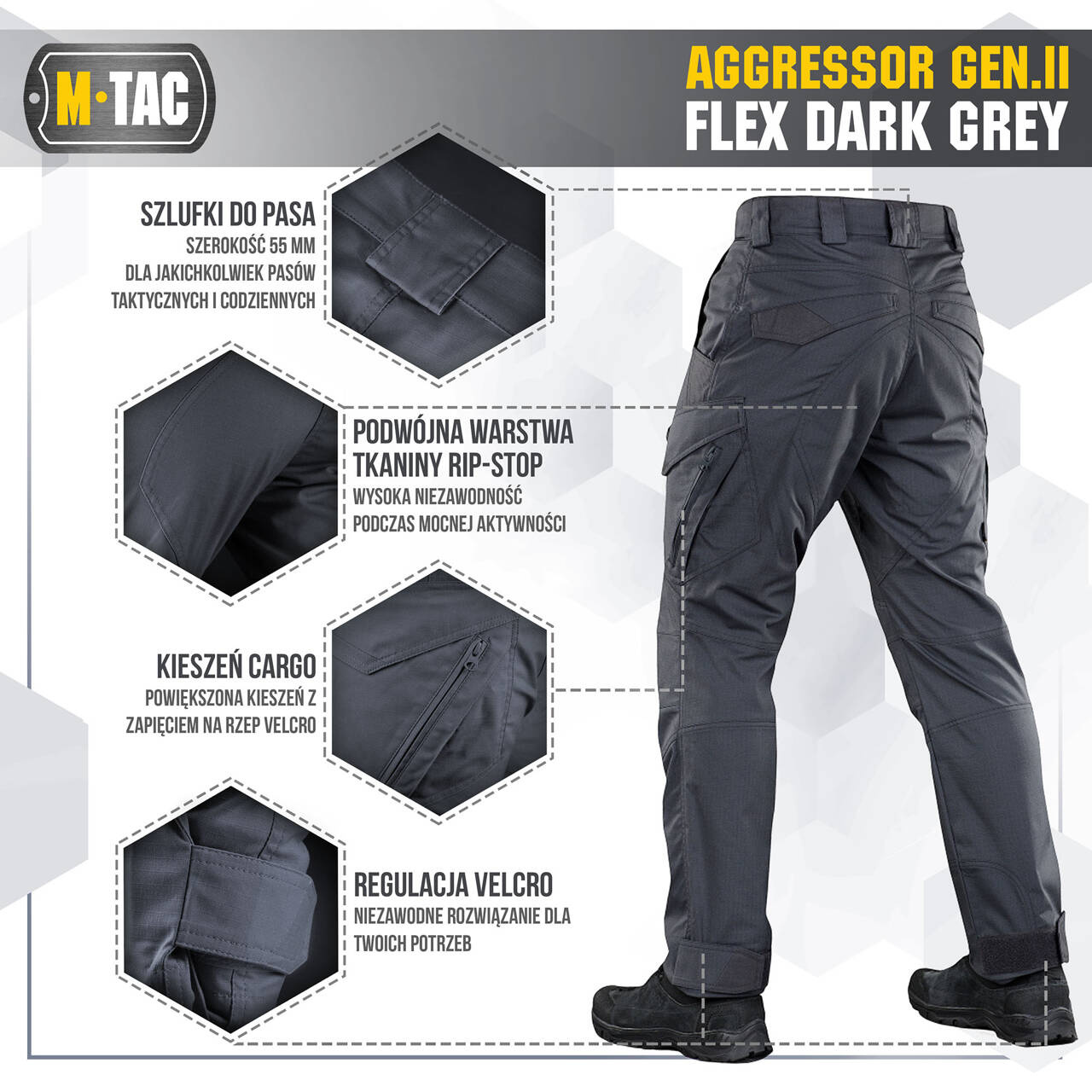 AGGRESSOR GEN.II FLEX TACTICAL PANTS, DARK GREY - M-TAC