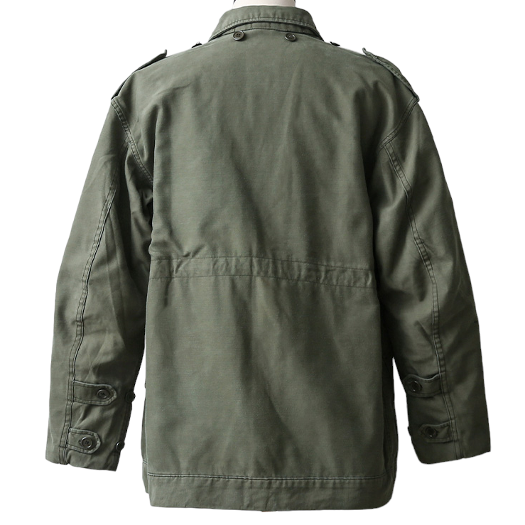 It has a similar texture to the US Army's M-65 military jacket. Although the design and functionality are very similar, the four diagonally placed pockets in the front, the distinctively shaped flaps, and the two-step adjustment button at the cuffs are superior in both functionality and design. It's a military jacket with a zipper pleat that keeps out the wind.